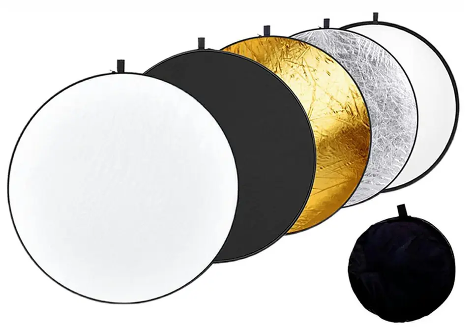 A set of 5 convenient, folding photo blendes with a diffuser! They are perfect for professional and completely amateur photography. They allow you to operate the light in external and internal conditions (as a reflector, for example) without the need for other accessories. They provide excellent photo quality thanks to the ability to reflect light and correct its color! Properly positioned, it eliminates shading and evens out the lighting of the frame!