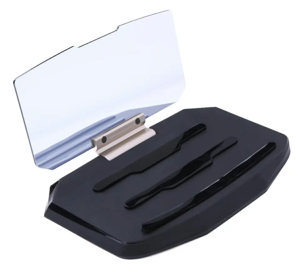 The head-up display for the smartphone, the so-called HUD (Head Up Display) is a perfect solution for all motorists. Head Up Display is a special housing equipped with a transparent lens, whose task is to produce a sharp and clear reflection of the image generated by any smartphone. Significantly increases the safety of the driver! It does not distract him and does not dazzle him at night. Dims the display light while enlarging the image by approx. 20%. With the right software, it can significantly reduce power consumption and increase battery life. NOTE: Product designed for phones with display diagonal up to 5.5''Product Features: Brand new, high quality product. Fully universal! It fits perfectly with all smartphones available on the market. Works with any phone software that uses HUD mode. Very simple and robust installation in any vehicle thanks to the use of double-sided 3M tape. Two ways of mounting: a holder with 3M tape (greater mobility) or a pad under the bottom of the display with 3M tape. The projection of the image takes place on a slide, which does not unnecessarily distract the driver's attention and increases his safety. The display enlarges the image by approx. 20% compared to the size of the display. The ability to freely manipulate the housing thanks to its rotating base. Great for working with your phone as a car navigation! Specification:Material: plasticSize diameter: 16 cm Sight glass diameter: 9.4 cmBreast thickness: 2 cmCase color: blackIncluded:1x Head Up Display for smartphone1x reflective film2x microfiber cloth1x additional 3M tape padStandard 3M tape pad and handleA self-adhesive dust absorberA route for sticking reflective film on the sight glassSet of mounting elements (3M tape) - see photosComplete of accessories for cleaning and maintenance - see photosWe invite you to place an order!