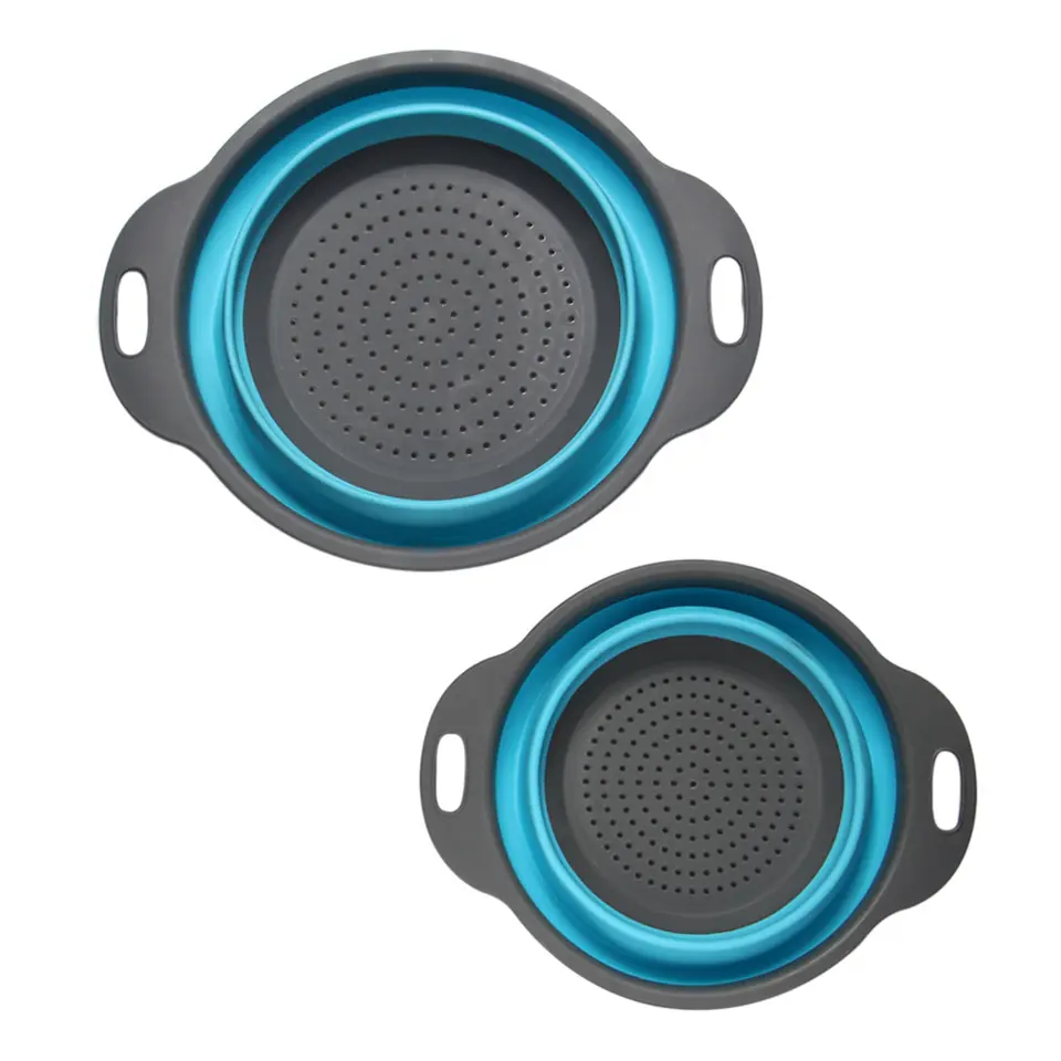 - A set of two, extremely practical silicone round colanders.