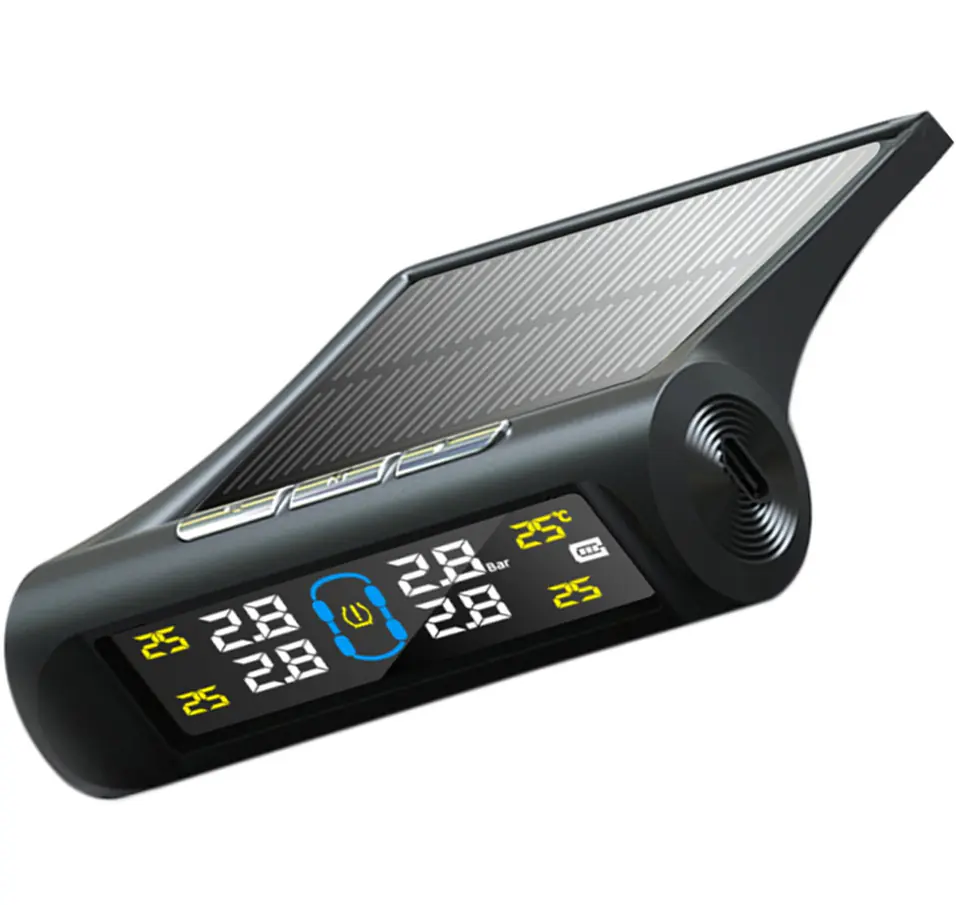 A set of pressure and temperature sensors in TPMS tires. It enables ongoing monitoring of indications in a particular tire. Easy installation and power supply of the sensor from the solar panel. A set of sensors sends information to the control panel within 3 seconds of a sharp change in pressure or temperature (or 3 minutes with gradual fluctuations). The easy-to-read LCD display allows you to easily view the readings. In case of insufficient lighting, the sensor can be powered by a micro-USB cable.