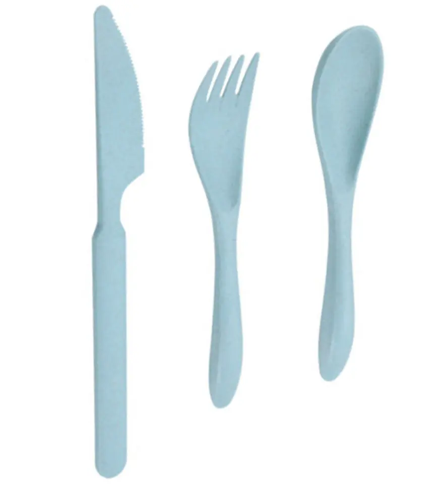 A set of 3 cutlery (knife, fork and spoon) with a convenient case for storing them. They are very light and durable, they can be safely washed in the dishwasher. They are made of ecological and biodegradable plastic (safe for the environment).