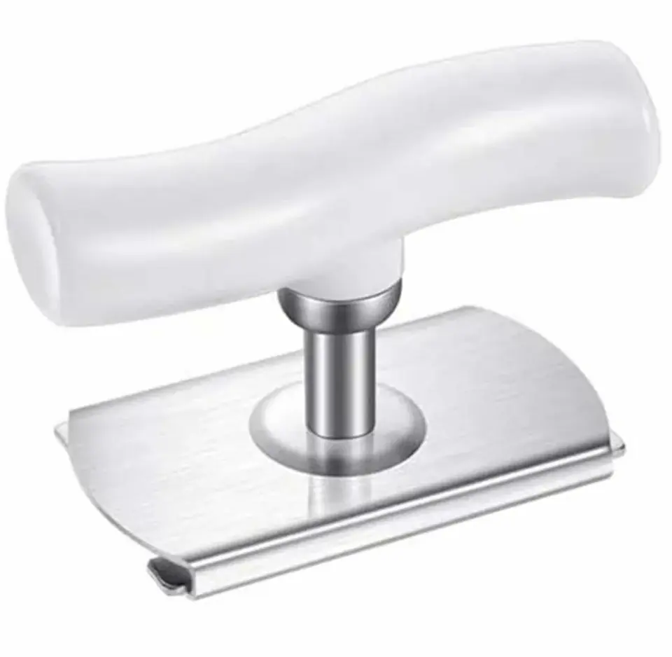 Universal bottle and jar opener. It allows for light and instant opening of various types of containers and screw-down packaging. An indispensable device in every kitchen. Large and comfortable handle makes it easy to open the lids.