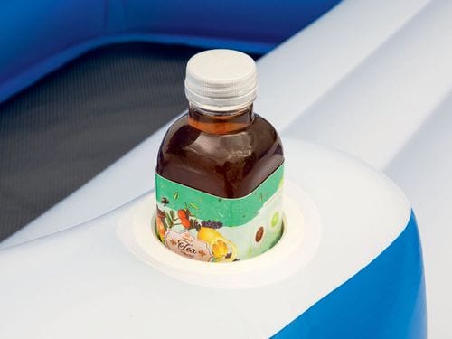 The system that is included in the mattress ensures its proper elasticity. The blue visor, which protects from the sun's rays, can be easily removed by removing the shadow, thanks to which the mattress is also great for sunbathing. Inflatable backrests will keep you comfortable and drinking holders make it easy to quickly access your favorite drinks. The mattress also includes handles and cords that make it easy to transport the mattress to the shore. In the middle of the mattress there is also a small pool for cooling the legs. The included thermal bag will allow you to cool down drinks and the built-in place on it will make it stable and will not interfere with rest. A repair patch is also included. The mattress is made of durable material such as vinyl.