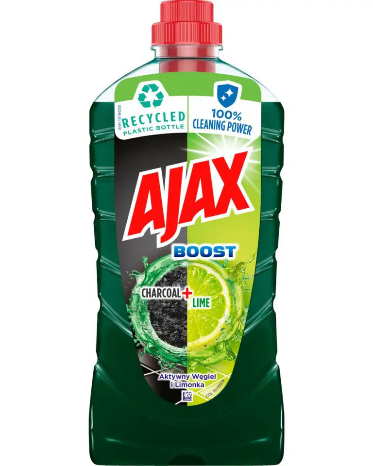 Ajax Boost Charcoal + Lime designed for cleaning all surfaces: floors, tiles, furniture, kitchen and bathroom surfaces. It cleans deeply, leaving a natural shine without streaks and a protective layer that makes dirt harder to settle on surfaces.