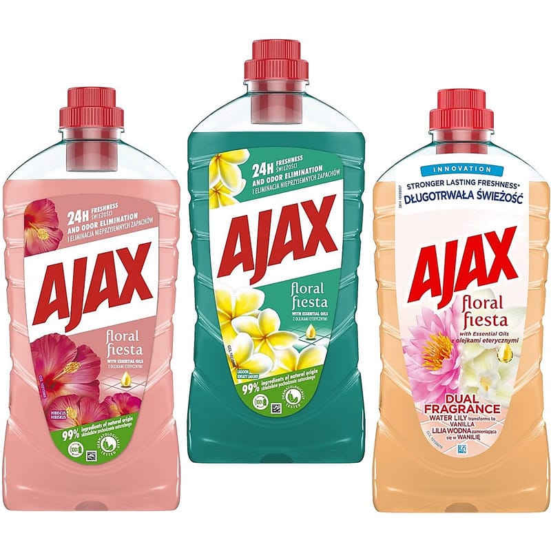 Ajax Floral Fiesta Water Lily + Vanilla Universal Liquid 1L. Take care of the pristine cleanliness of all surfaces in your home. Get Ajax Floral Fiesta Dual Fragrance Water Lily and Vanilla. It is an innovative universal liquid with immediate action. It will effectively fight any dirt, making cleaning something much more pleasant. It can't be missing in your home!