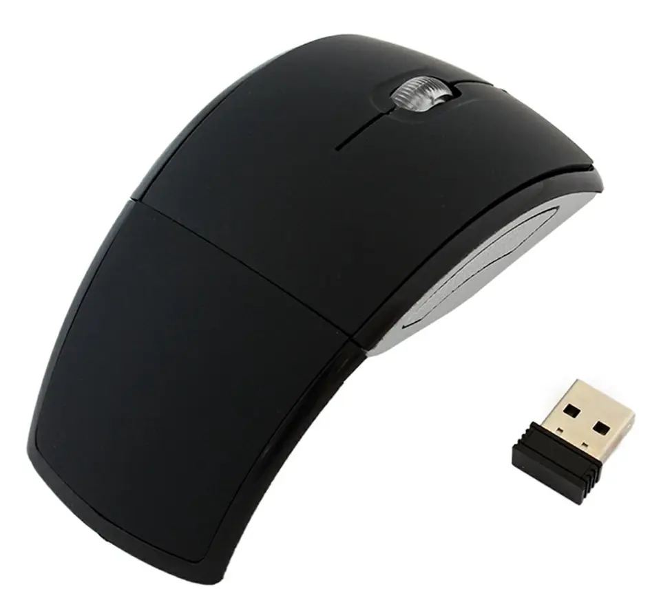 Brand new foldable wireless optical mouse with 3 buttons. It is perfect for everyday work on a computer, FPS games and for creating computer graphics. The symmetrical design makes it ergonomic for right- and left-handed users. Ergonomic design and light weight makes the mouse comfortable to control. Very pleasant to the touch - covered with a special material.