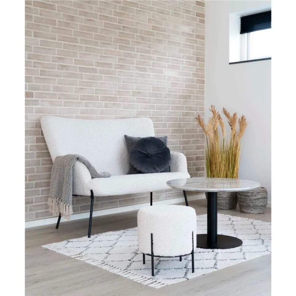 Pouf in a fabric imitating a lamb is the latest interior design trend, which quickly gains recognition among people who value good design. The seat in a pleasant to the touch fabric will allow you to relax and unwind. A pouf in a bright fabric will fit into modern and minimalist interiors. It can be used not only as an additional seat, but also as a footrest for tired legs after a whole day. The base of the pouf are four powder-coated black legs made of metal. The core of the pouf is pine wood on a metal frame. The whole was filled with soft upholstery foam and upholstered with an interesting fabric imitating a lamb. BOX DIMENSIONS: 37X37X41 CM BOX WEIGHT: 3.4 KG
