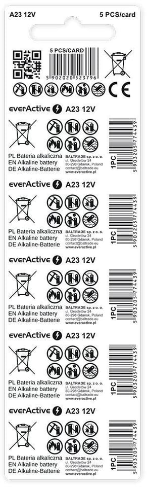 Alkaline batteries everActive A23 12V - blister 5 pcs