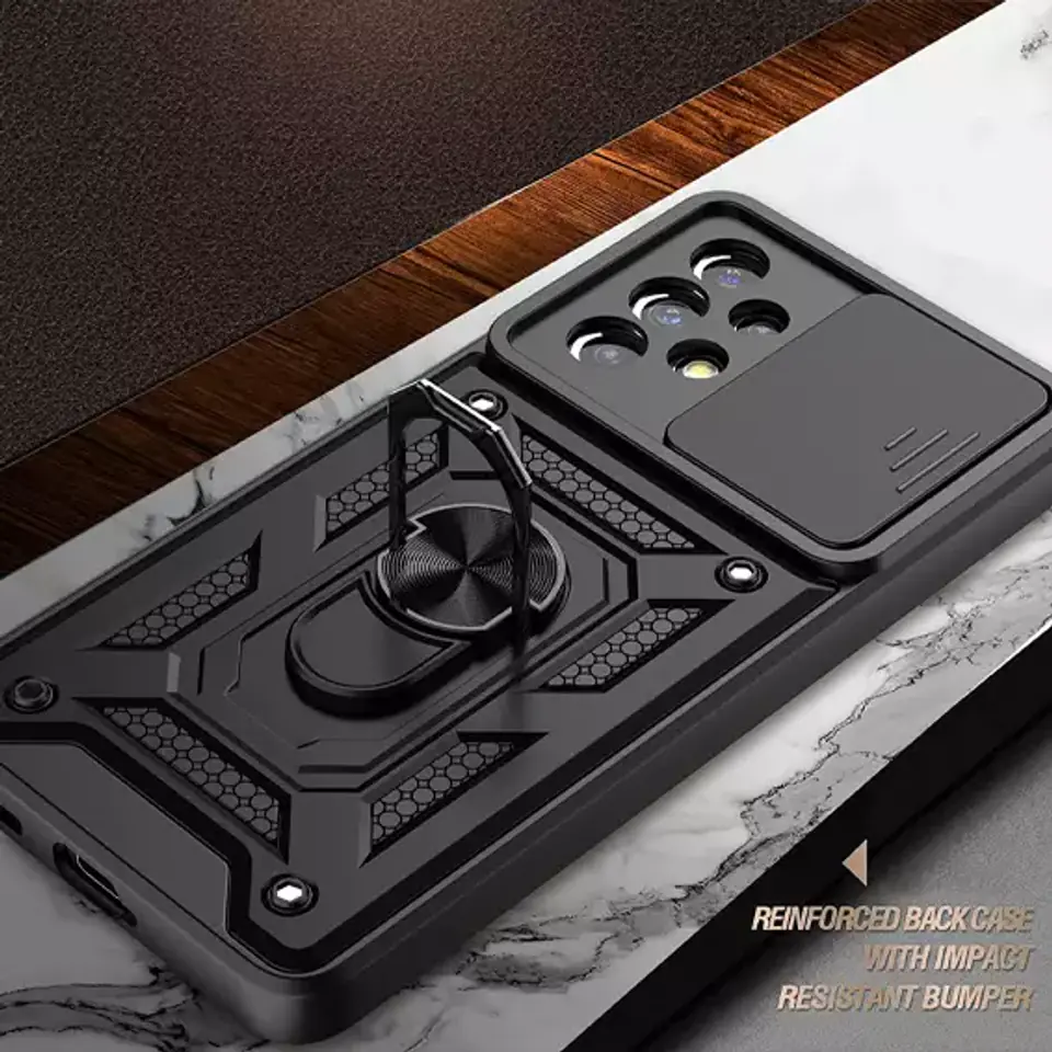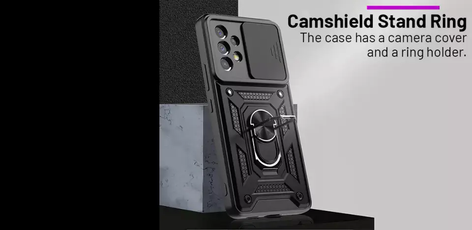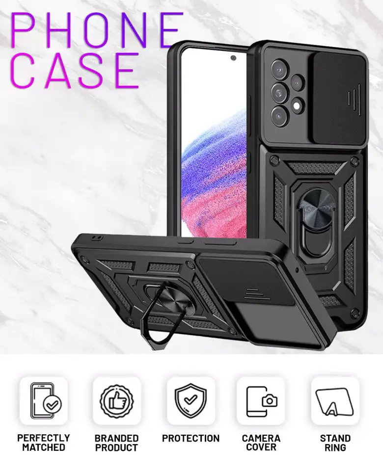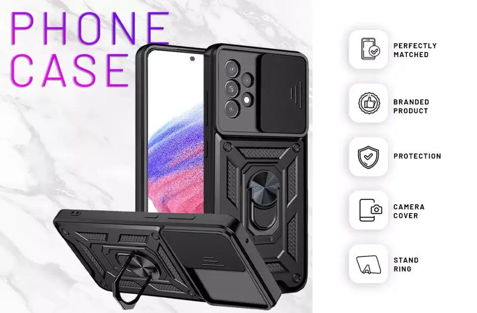 - Built-in ring that performs 3 functions: magnetic plate, stand and finger hook