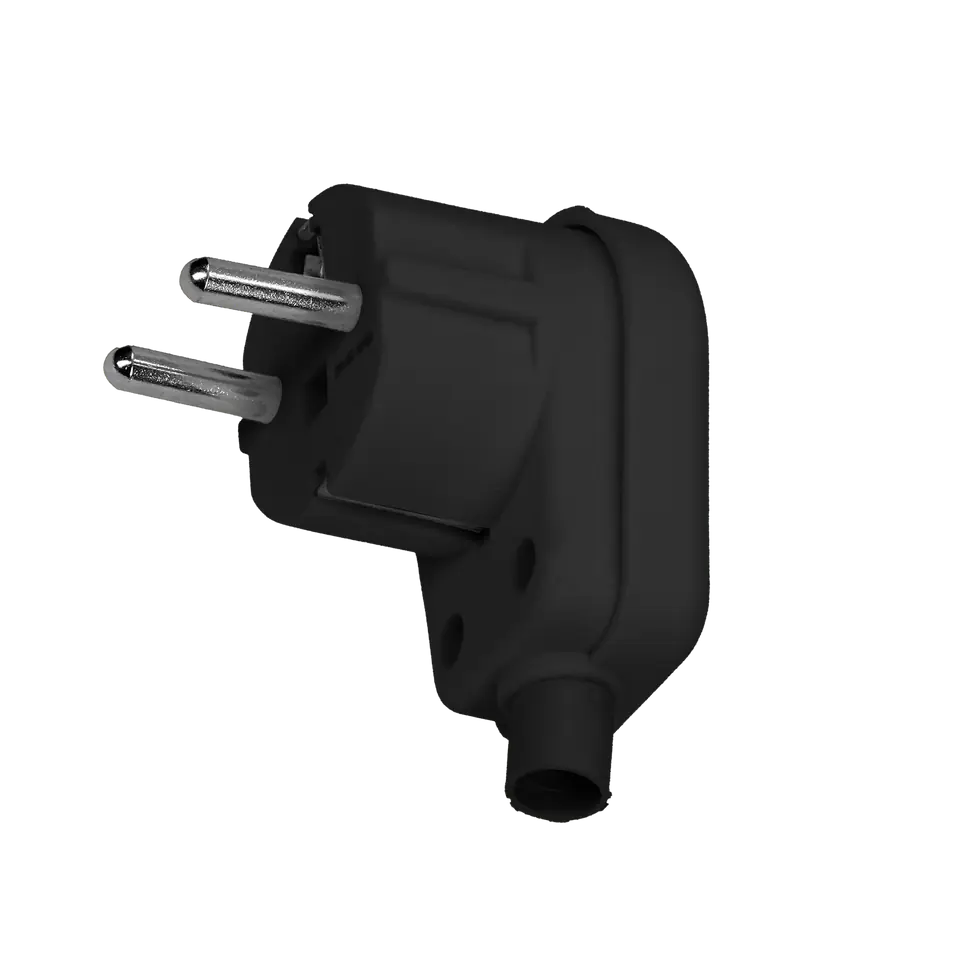 Angular, detachable plug with Uni-Schuko grounding. Connection system with cable - screw. Color: Black