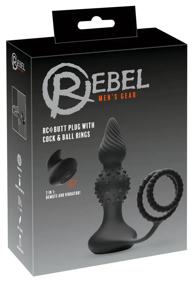 plug with integrated penis ring by Rebel. The cap has vibrations that can be remotely controlled by remote control. Remote control range up to 10m. The rings firmly adhere to the penis and testicles, effectively supporting erection. At the same time, the cork equipped with special tabs and with 10 different vibration modes provides intense stimulation in the back of the penis. The elastic connecting strap is close to the crotch and provides additional stimulation.