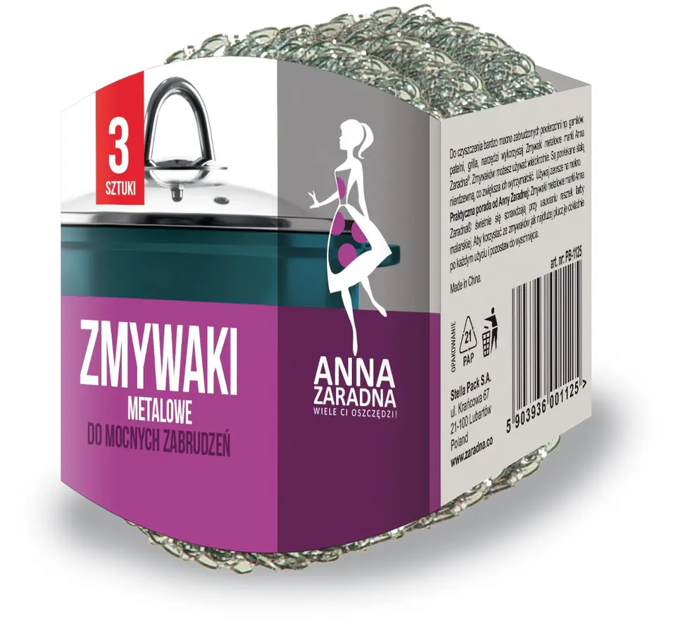 The metal sponge is used to clean heavily soiled pots and pans made of aluminum, steel, steel enamel or heat-resistant glass. The innovative formula of the metal dishwasher means that it does not scratch the cleaned surfaces and does not hurt the hands. The dishwasher is ideal for very difficult dirt, e.g. burnt and dried food, but also for cleaning heavily soiled surfaces, e.g. grill, tools, removing paint residues. The dishwasher is made of galvanized wire in silver color. The package contains 3 pieces of dishwashers.