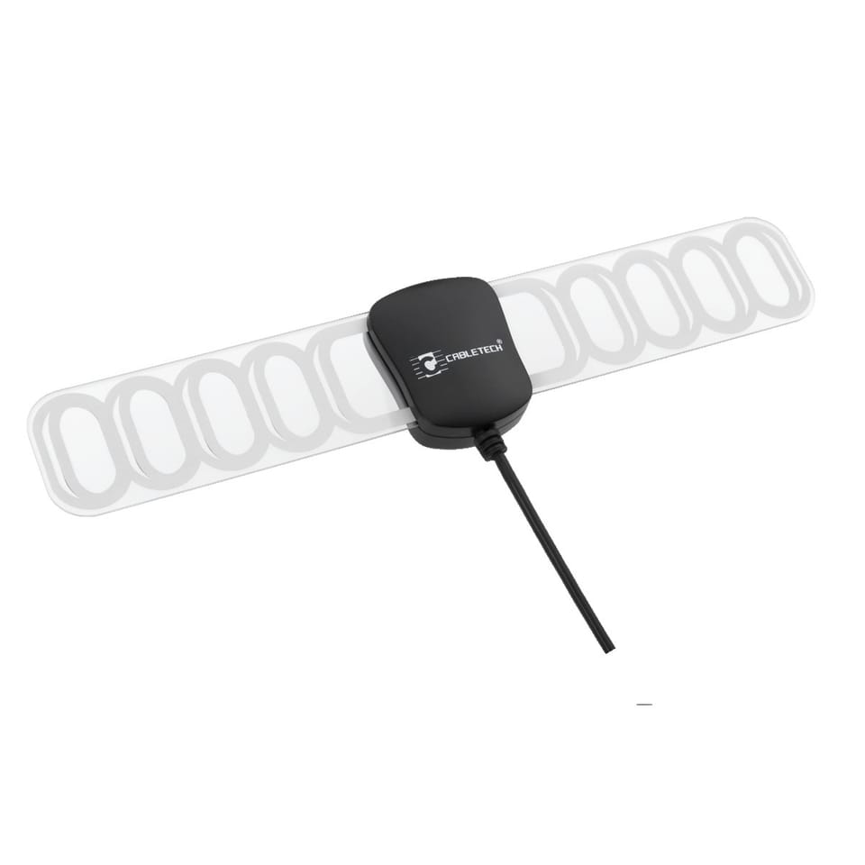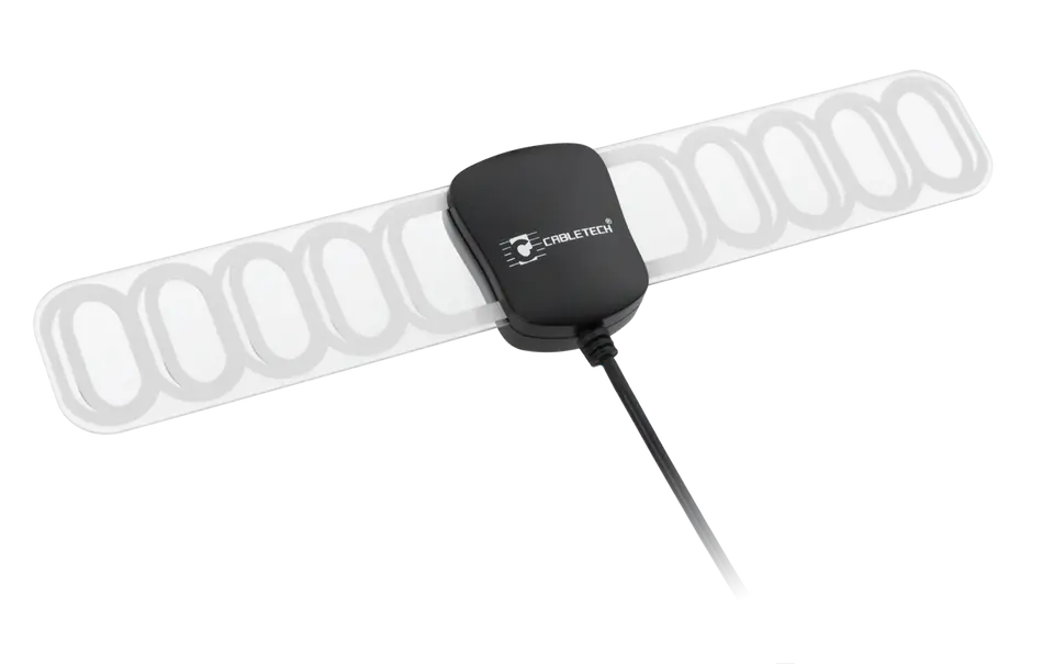 Car antenna with amplifier. It allows you to receive analog TV, digital tv and radio stations. Mounted to the windshield inside the car using double-sided tape. After mounting on the glass, it is enough to connect the antenna using appropriate cables to a multimedia station with a TV playback function.