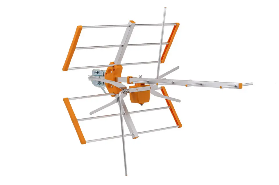 It is a professional directional antenna for receiving DVB-T and DVB-T2 digital terrestrial television with high efficiency enabling the reception of MUX-1, MUX-2, MUX-3, MUX-4 and MUX-8. It is adapted for outdoor installation – its design and the housing of dipole cans is resistant to water and UV radiation. Ideal for areas with difficult reception conditions. It has a folding and durable construction. Thanks to the CLICK-CLACK system, its installation is fast (you can assemble the antenna yourself in 30 seconds !!!!) and trouble-free.