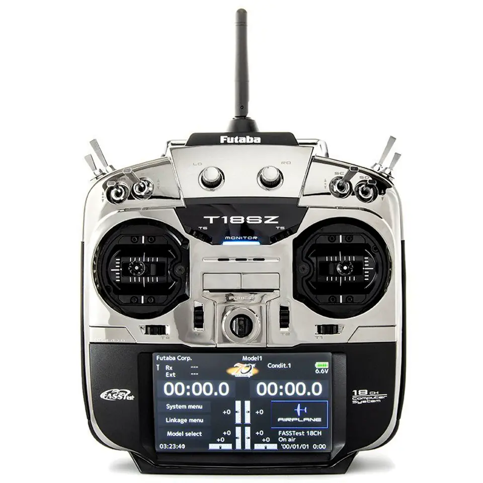 18SZ is the latest transmitter from Futaba. It is a comprehensive transmitter that can work in all available modulations used by Futaba – even the most complex RC devices. The transmitter supports all types of RC devices: airplanes, gliders, helicopters and multirotors (drones).
