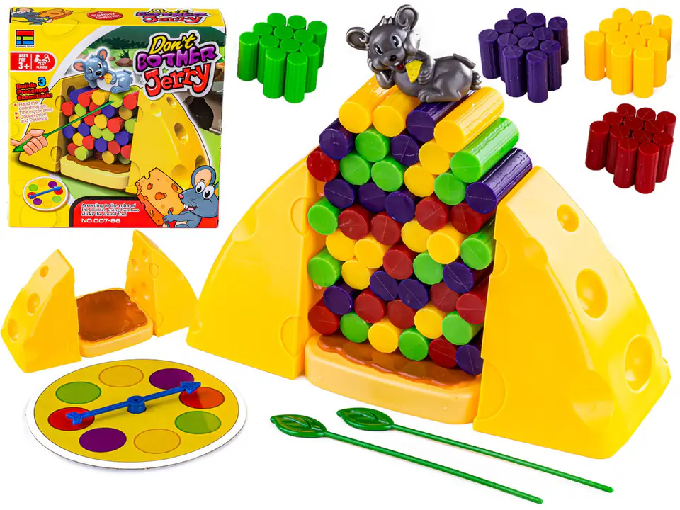 The rules of the game are very simple. First, we fold the cheese with the base and arrange the tower of colored beams. At the very top we put a cheerful mouse. She's fresh from eating - so we don't want to disturb her :)