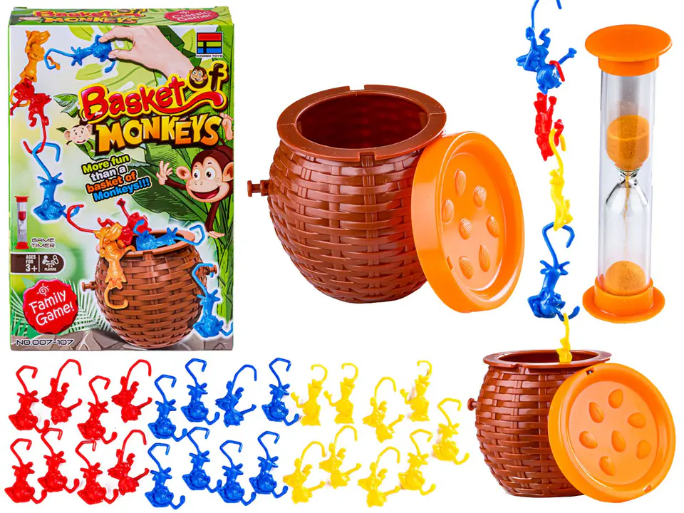 The basket can be used both for play and as a container for storing monkeys after the game.
