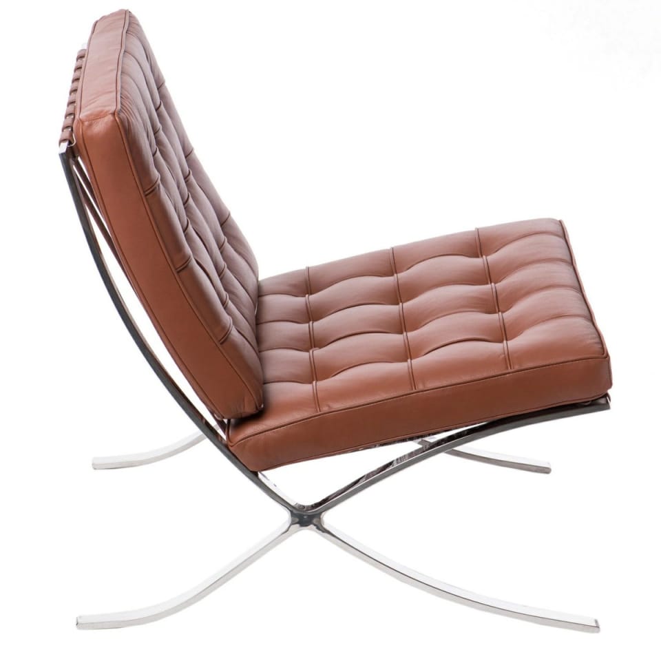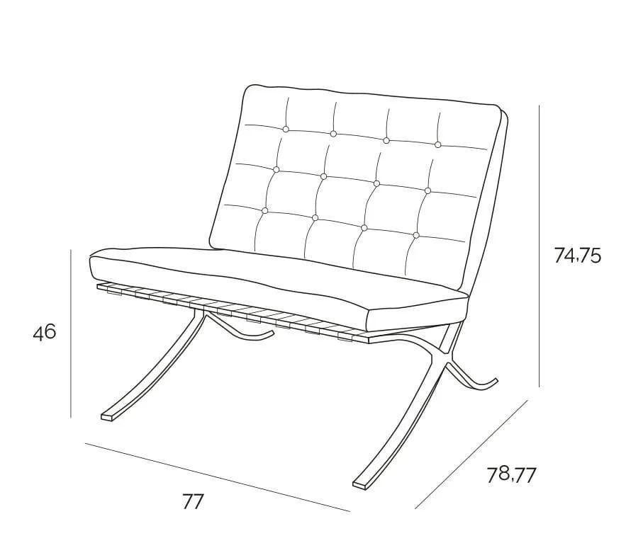 The BA1 armchair is inspired by the design of the Barcelona armchair. Barcelona is an armchair designed in 1929, which was made to order and stood in the German pavilion at the exhibition in Barcelona.,Characteristically bent in the shape of the letter "X" chrome base and quilted in squares natural leather are the most characteristic features of this chair. This armchair is complemented by Barcelona Ottoman and Barcelona, a table.,Armchair made entirely of natural leather.