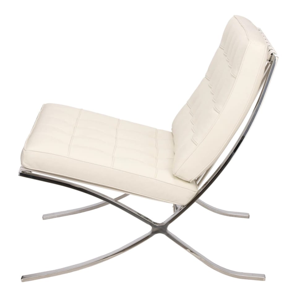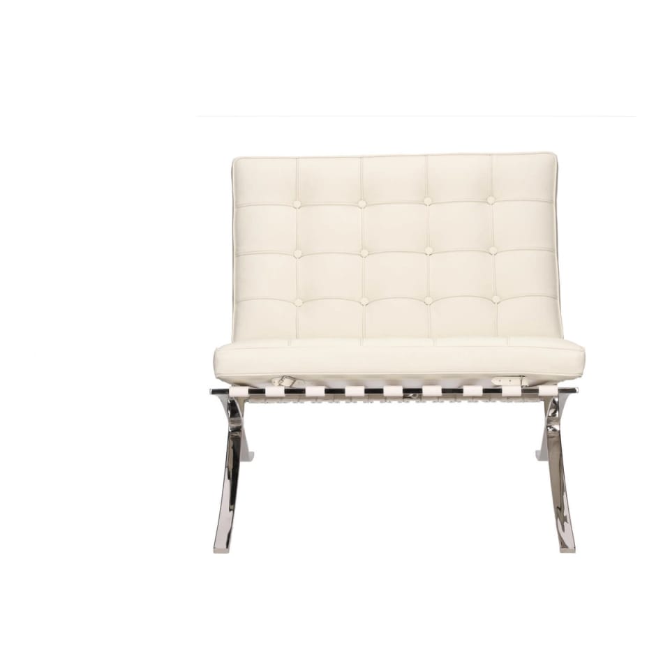 The BA1 armchair is inspired by the design of the Barcelona armchair. Barcelona is an armchair designed in 1929, which was made to order and stood in the German pavilion at the exhibition in Barcelona.,Characteristically bent in the shape of the letter "X" chrome base and quilted in squares natural leather are the most characteristic features of this chair. This armchair is complemented by Barcelona Ottoman and Barcelona, a table.,Armchair made entirely of natural leather.