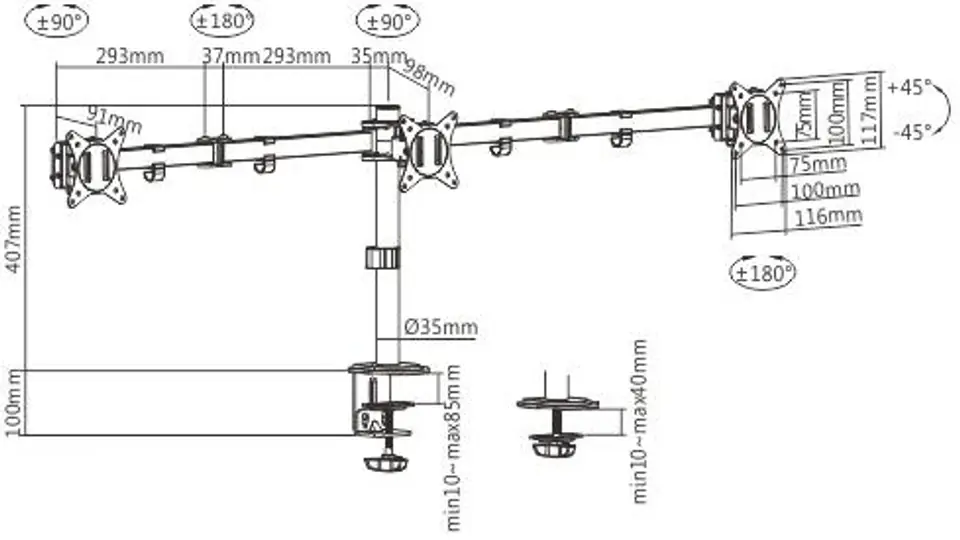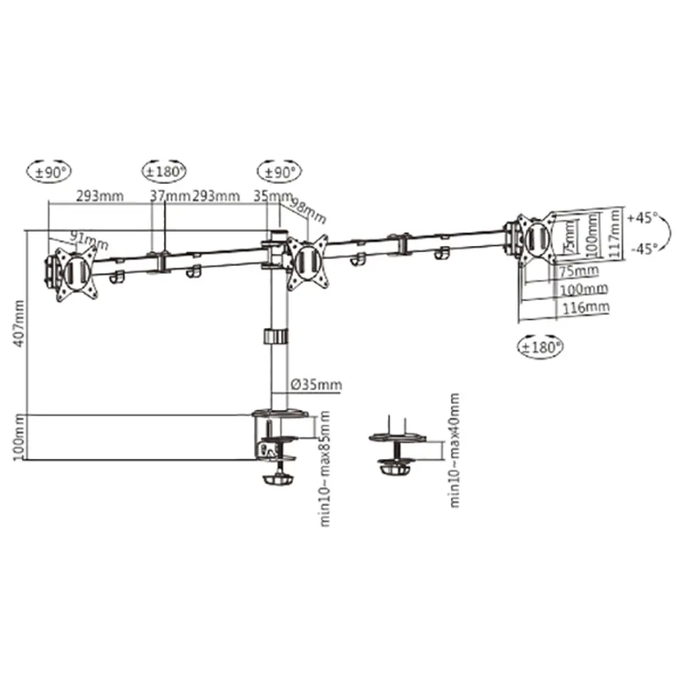 Articulated desk mount for 3 monitors Spacetronik SPA-130