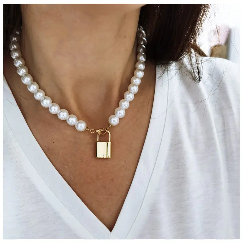 ARTIFICIAL PEARL NECKLACE with padlock N710