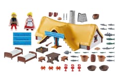The 73-piece Asterix toy set includes 2 PLAYMOBIL figures fishmonger Unhygienix and his wife Bacteria, Unhygienix's hut, two beds, table, stool, fireplace, baskets, fish and seafood for sale and other furnishings. The roof of the hut can be partially opened for playing.