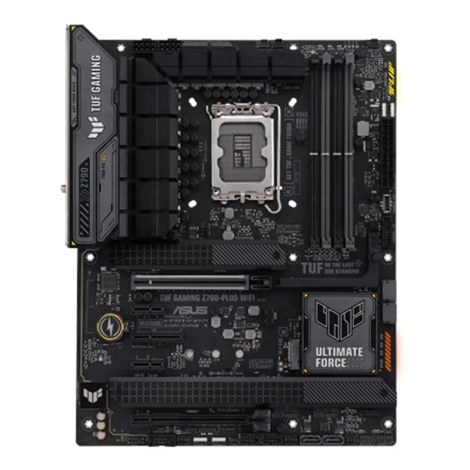 Intel Z790 (LGA1700) ATX gaming motherboard, 16 + 1 DrMOS power stages, PCIe 5.0, DDR5 memory support, four M.2 slots, Wi-Fi 6E and Intel 2.5 Gb Ethernet, HDMI, DisplayPort, USB 3.2 Gen 2x2 Type-C, USB 3.2 Gen 2 Type-C front panel connector, SATA 6 Gb/s, Thunderbolt 4 port and RGB lighting with Aura Sync