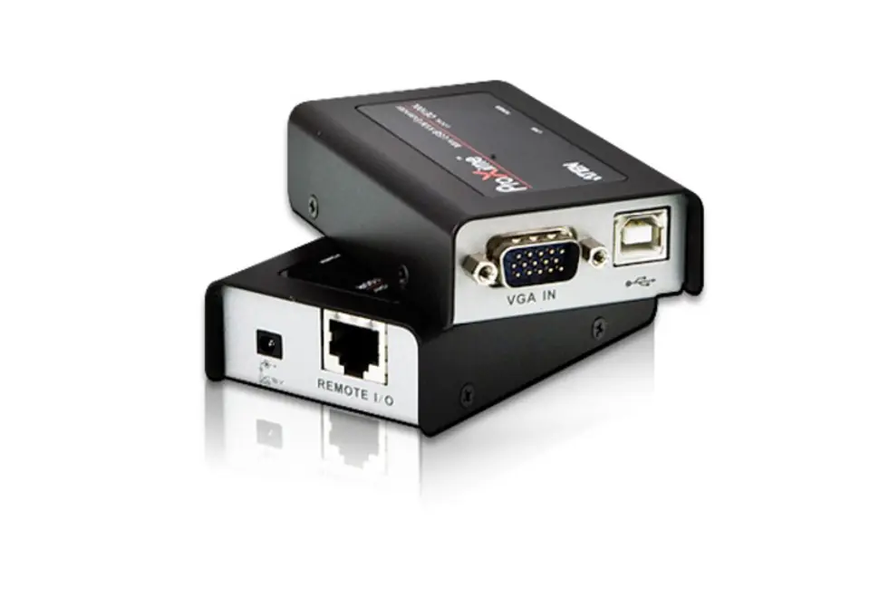 TRANSFORMATOR USB CE-100 zapewnia dostęp do komputera ze zdalnej konsoli USB (monitor VGA, klawiatura USB, mysz USB) za pomocą pojedynczej skrętki komputerowej UTP kat. 5e