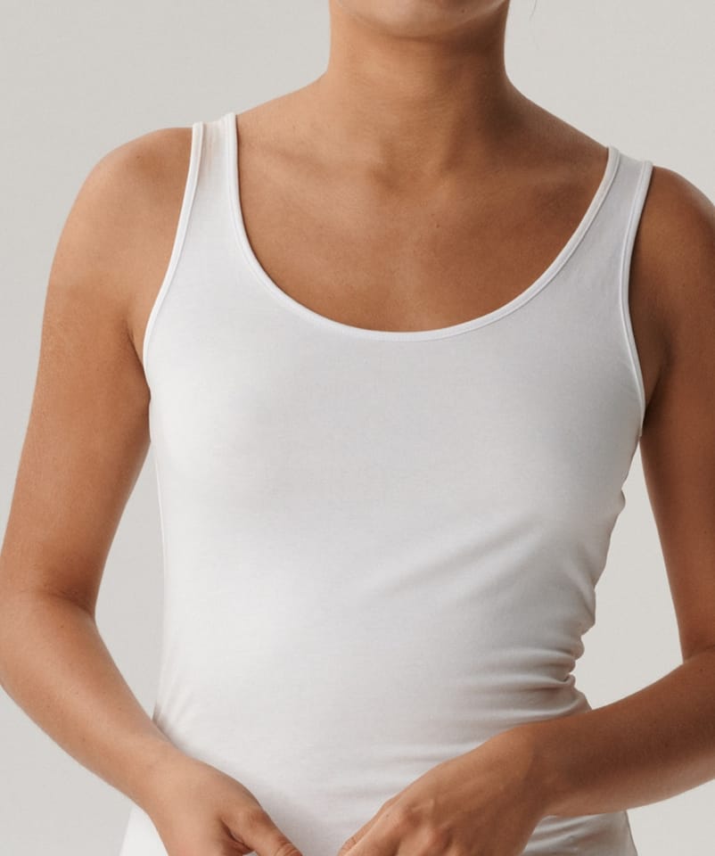 Koszulka damska, wykonana z miękkiej i miłej w dotyku bawełny, posiada zaokrąglony dekolt oraz grubsze ramiączka, idealnie przylega do ciała. Doskonale nadaje się pod obcisłe ubrania oraz jako ubranie wierzchnie. Skład: 95% bawełna, 5% elastan.