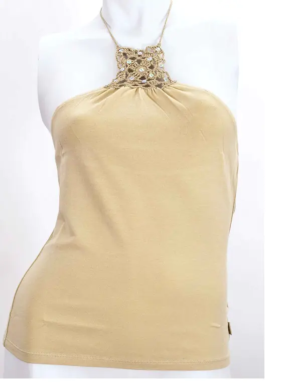 Women's T-shirt, tied around the neck, made of pleasant to the touch cotton (95%) with the addition of elastane (5%).