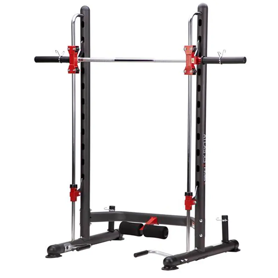 Atlas X3 HMS is a classic Smith crane, which additionally has elements that allow you to enrich your training. The Smith crane is a device supporting beginners in exercises, and advanced users, guaranteeing many opportunities to diversify training. Its design introduces completely new possibilities for strength training. This is mainly due to the combination of the sliding mechanism with the neck and the belay system. Using a gantry, it is possible to perform exercises for both lower and upper muscle parts, because the equipment is also suitable for training with a bench. Classic squats, offense squats, bench press and much more, but in the case of the X3, that's not all. The device has additionally mounted push-up supports and a special leg holder that will allow you to make bends from lying down. This solution will allow you to take into account the abdominal and chest muscles in training, while loading your own body. X3 crane is made of the highest quality materials. It is a stable device, the maximum permissible load of which is 136 kg. Thanks to the stands, mounted on the back of the product, with the storage of weighted plates, there will be no problem. Knurled neck, fits perfectly in the hand, and thanks to the clamps and the perfectly matched diameter of the neck collar, the plates do not sway during exercise. The X3 HMS crane is a great product for any home gym. Specification: Material: steel Product dimensions: Length: 112cm Width (without neck): 117cm Height: 191,5 cm Neck: Length: 185 cm Gripping part length: 102 cm Handle diameter: 32 mm Load space diameter: 50 mm / 25 mm Weight: 13 kg Pump stands: Handle length: 15 cm Handle diameter: 30 mm Handle spacing: 50 cm Leg holder: Length: 40 cm Height: 14 cm (bottom edge) Belay: 8 degrees Load plate stand: 19.5 cm Linear bearings in the crane mechanism Possibility of training with a bench Maximum load: 136 kg Weight: 48 kg Notes: Not intended for commercial use Warranty 24 months