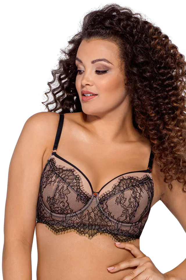 - the bridge and sides are made of beige mesh covered with sensual lace