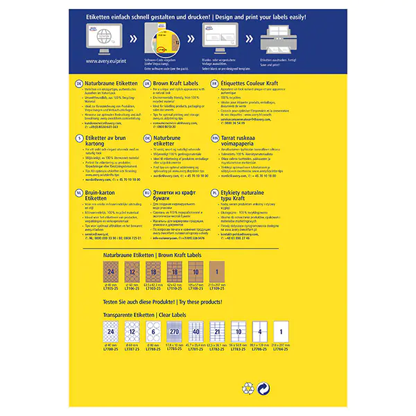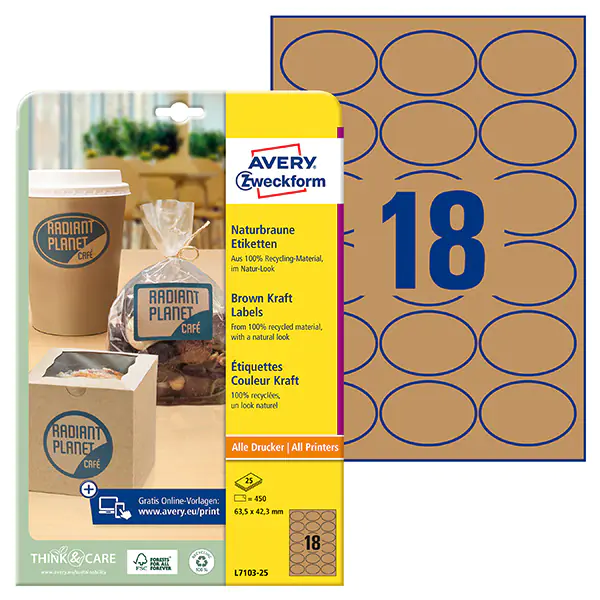 Avery Zweckform Label 63.5mm x 42.3mm, A4, naturally brown, 18 labels, 25 pack each, L7103-25, laser