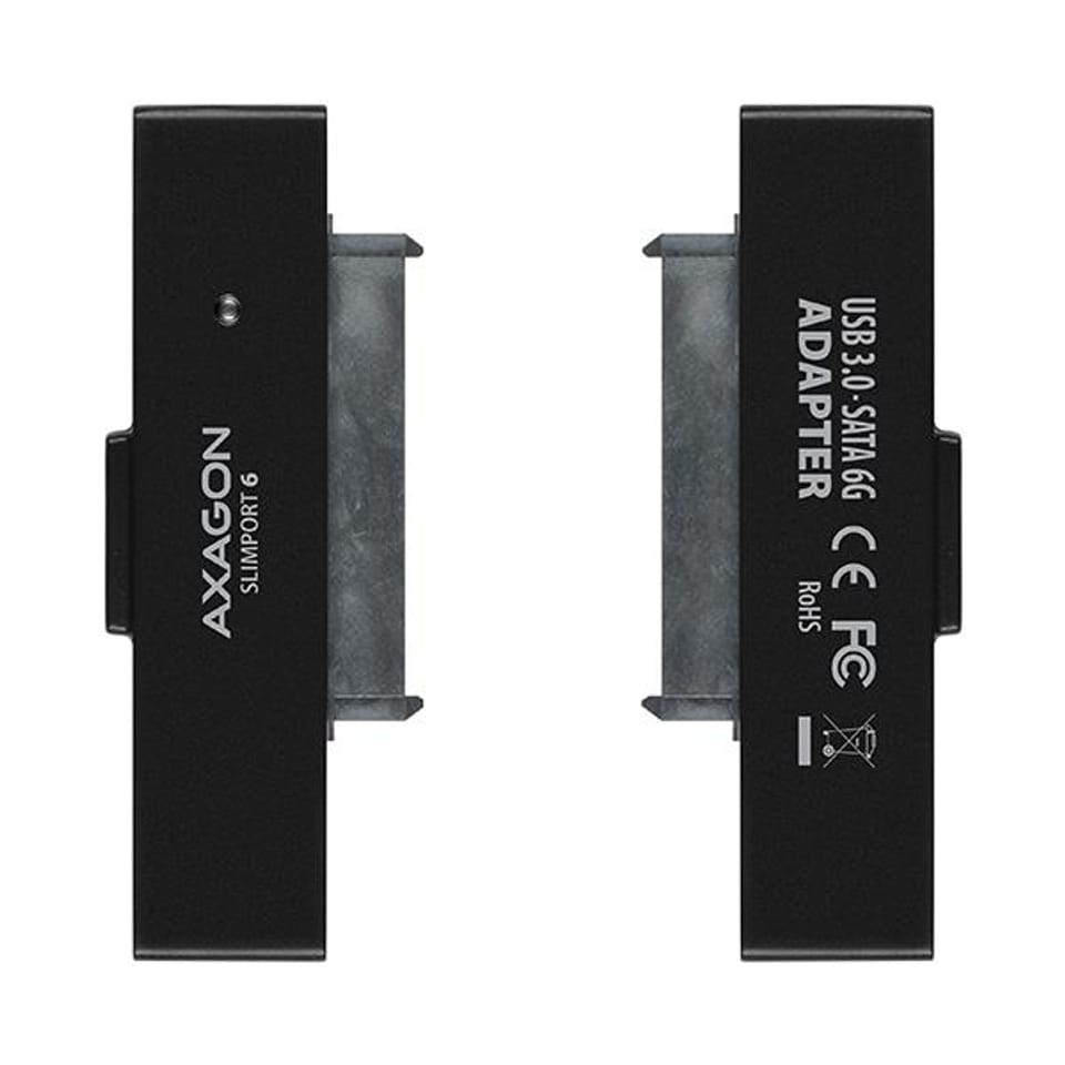 A compact AXAGON ADSA-1S6 SLIMport6 high-speed adapter with USB 3.0 and SATA 6G interface intended for easy connection of SSD or 2.5" SATA disk.