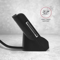 Desktop stand reader Smart card / ID card AXAGON CRE-SM2 with USB 2.0 interface include SD, microSD and SIM card slots.