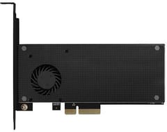 The high quality card design, including copper-plated vents, assists in a better dissipation of heat generated during the M.2 SSDs operation. A metal cover with fan and an attached passive cooler, incl. thermal pads, assist in M.2 SSDs cooling. It results in an ideal combination of passive and active cooling of M.2 SSDs and heat removal. Thanks to the cooling and temperature reduction by up to 35°C, it is possible to use the maximum power of deployed SSDs.