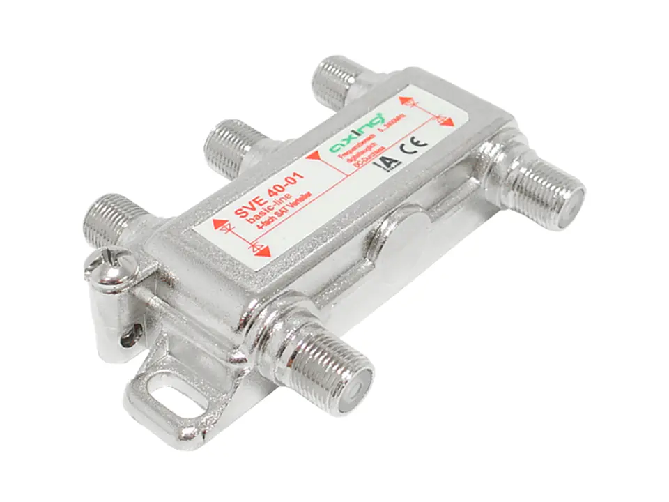 AXING SVE 40-01 splitter. The splitter is manufactured by the Swiss company AXING, a leader among suppliers of SMATV equipment for the European market. The product is characterized by careful workmanship, repeatability of parameters. AXINGA engineers have made every effort to minimize damping. Distinguishing features: - good value for money - low attenuationNumber of outputs4Attenuation14 dBIsolation18 dBWomiary77 x 52 x 17 mm