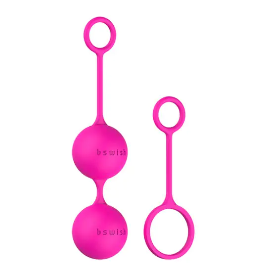 Strengthen your pleasure in comfort and style with the Bfit Classic love balls, an adaptable workout regimen designed to grow with you. The Bfit Classic includes single and dual body-safe silicone harnesses, along with two petit interchangeable silky-smooth silicone love balls. Find the routine that works best for you by using either the single 24g weighted silicone ball, or combine both balls for a total of 48g. Whichever routine you choose, you’ll enjoy silky body-safe silicone love balls and soft, flexible body-safe silicone harnesses. The Bfit Classic is waterproof and perfect for the bath or shower. Cleanup is a breeze, simply use soap and warm water and air or towel dry. Best used with a quality water-based lubricant to protect the smooth surface. Features: - 100% Body Safe Materials - Colors: Azure, Black, Powder Pink - Material: Silicone - Single Harness Length: 9.6cm - Double Harness Length: 14cm - Weight: 2 x 24 g - Ball Diameter: 3.5cm - Box Contents: 1 Instruction Booklet, 1 Massager - Waterproof: Yes