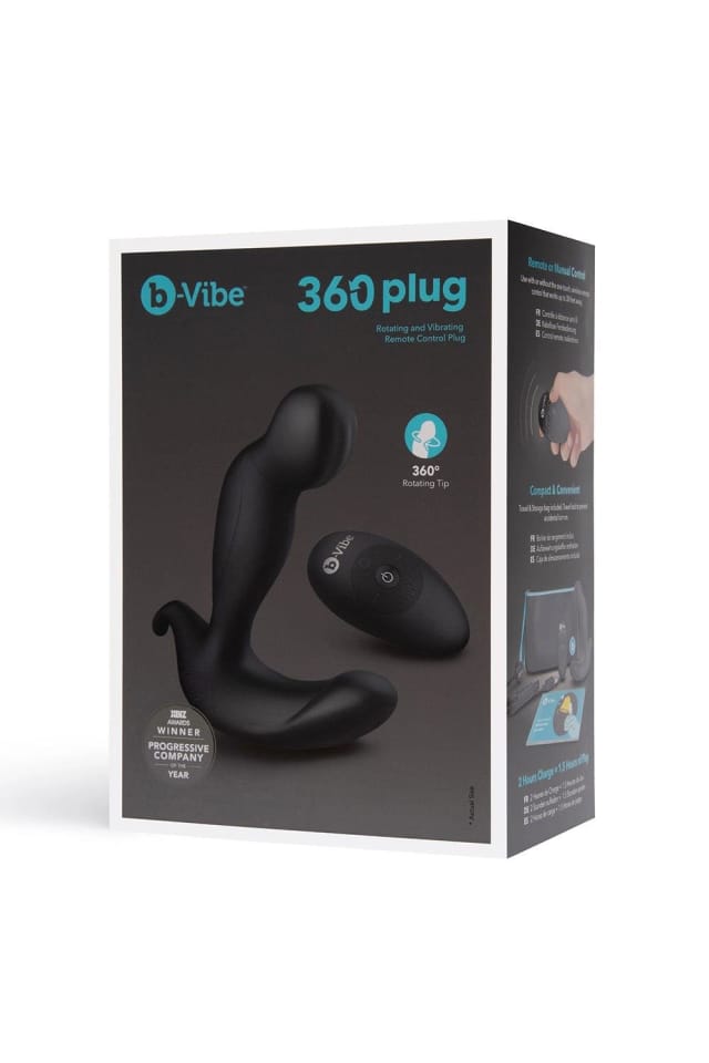 Double the sensation for heart pounding stimulation. The 360 Plug puts pleasure in your palm with remote controlled vibration and 360 degree rotation settings, a smooth silicone body, and simultaneous prostate and perianal pleasure.