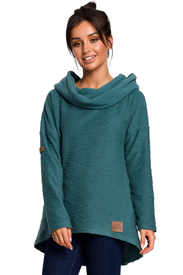 B131 Sweatshirt with wide collar and hood - turquoise Turquoise, Size XXL (44)