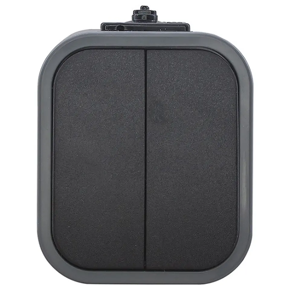 The WNT-2B2 double switch in gray-black is designed for surface mounting. The product is available in 4 color versions: white, gray, gray-gray, gray-black.