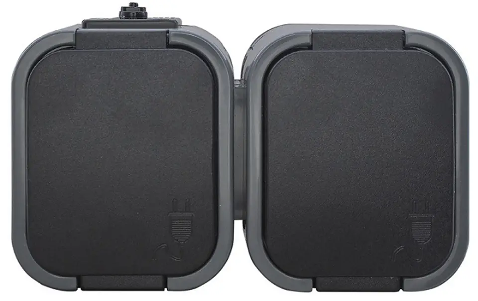 B2 SOCKET DOUBLE N/T Z/U IP44 GREY/BLACK