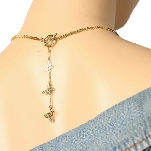 Naszyjnik z łańcuszkiem na dekolt i plecy. Można obracać i nosić dowolnie. Doskonały na specjalne okazje, biżuteria ślubna.