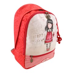 Backpack - Gorjuss - Time To Fly Santoro London is a manufacturer of unique products that will delight every girl and many adults! The brand is known all over the world, and products are sold in the most famous and prestigious boutiques. In the most popular of their collections – Gorjuss – you will find beautiful handbags, wallets and purses, original stationery (notebooks, diaries, pens, pencils) and unique mirrors, lip balms, caskets and much more! The Gorjuss collection is a great idea for a unique gift for any occasion! Product characteristics Extremely practical and beautiful backpack with the image of a Gorjuss girl in shades of coral and vanilla. It has soft and comfortable handles to put on the back with adjustable length. Zippered pockets decorated with medallions in the style of antique brass with the head of a girl Gorjuss. Spacious interior decorated with stylish stripes. Lightweight and functional, divided into two pockets. The first, spacious designed for larger elements with additional pockets and zip storage. The second, flat for trifles. Extra zipper compartment on the outside. Size: 45cm. x 33cm. x 12cm. Designed for children over 3 years old. 330GJ12