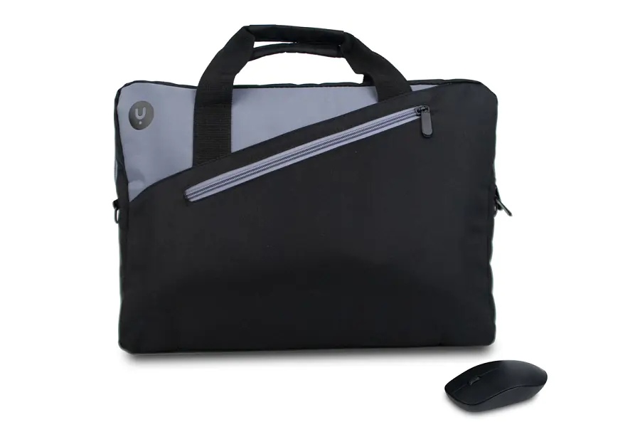 Includes laptop carrying bag and optical mouse. Bag: designed for laptops with a matrix up to 15.6" padded main compartment (383 x 262 cm)front pocket for documentsstrap for attaching the bag to the handle of the strollerMouse: optical sensor with a resolution of 1000 dpi2 buttons and scroll wheelUSB connectorDesigned for both right- and left-handed users