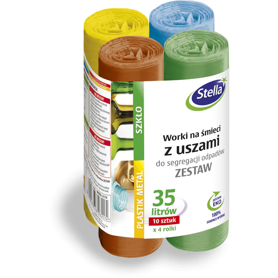 Set of 4 kinds of eared garbage bags for segregating paper, glass, bio, metal and plastic waste