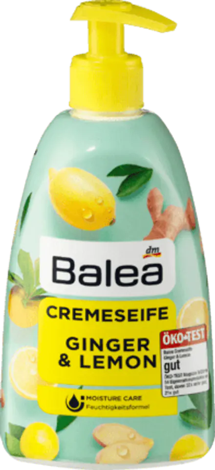 Balea Ginger and Lemon liquid soap maintains the skin's natural moisture balance thanks to its delicate care formula and moisturizing ingredients. The fruity scent pampers the senses. The formula with the Moisture Care moisturizing formula is vegan. Dermatologically confirmed skin compatibility. Bottle body made from at least 98% recycled material (without cap and foil). Formula without microplastics and soluble in water, purely synthetic polymers.