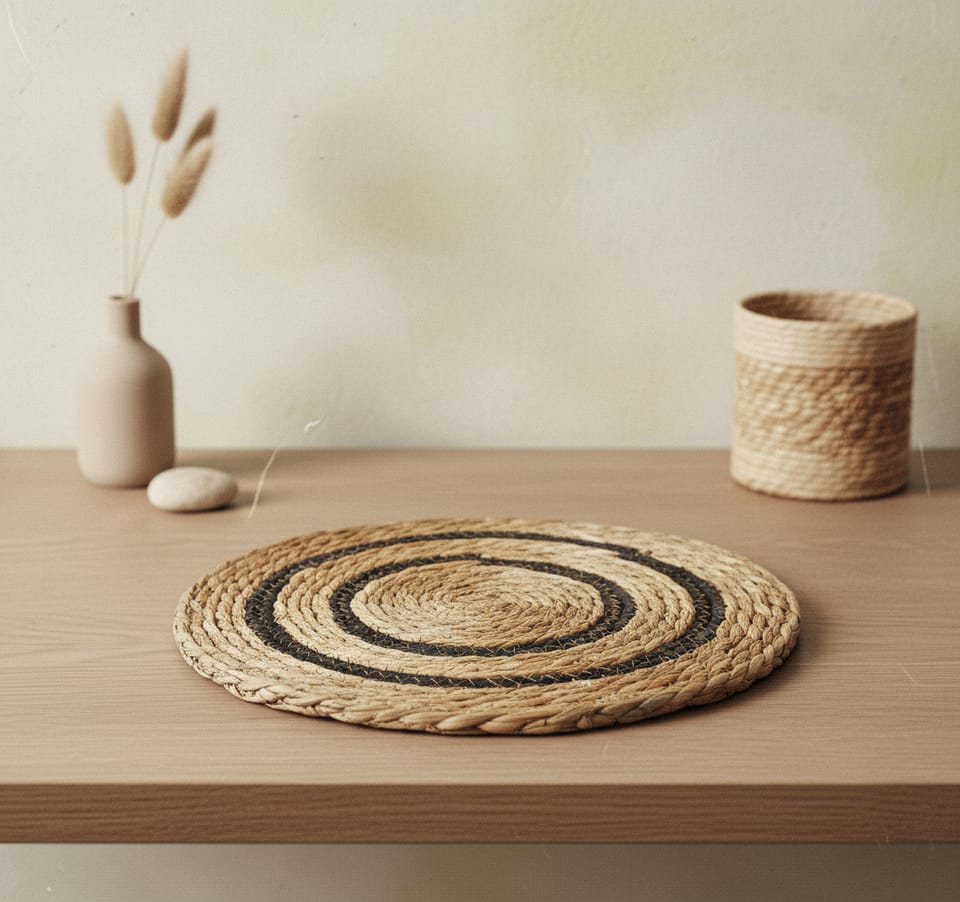 BALI mat by MONDEX. The mat was made of seagrass. Like the baskets from the BALI collection, they are a hit of recent seasons due to their extremely diverse arrangement possibility. Seagrass mats can be used to arrange both the table and flower corners in the house. As a floor decoration, it will work perfectly. They are perfect for boho, ethno, eclectic and country style interiors.