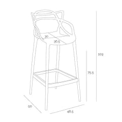 Pełna ekspresji oryginalna forma stołka barowego Lexi, zachwyca swoją fantazyjnością i pobudza wyobraźnię. Wizualną lekkość zawdzięcza niezwykłemu siedzisku i smukłym nogom, fizyczną lekkość i wygodę użytkowania w różnych warunkach zapewnia polipropylen, z którego zostało wykonane. Dzięki matowemu tworzywu stołek wygląda elegancko i zarazem jest łatwy w czyszczeniu. Podstawa stołka została wzmocniona poprzecznymi przykręcanymi wspornikami, które gwarantują stabilność i zarazem są oparciem dla nóg. Do stołka barowego idealnie pasują krzesła z tej samej nazwie- Lexi. Stołek inspirowany jest projektem Masters. Dostępne jest w trzech wersjach kolorystycznych. Max. obciążenie: 120kg Szerokość siedziska: 30 cm Głębokość siedziska: 36,5 cm Wysokość od ziemi do poprzeczki na nogi: 30cm Wymiary kartonu: 132x69x51 cm Max. ilość szt. w kartonie: 4 Waga: 16,8 kg