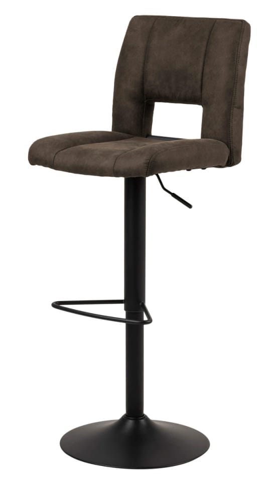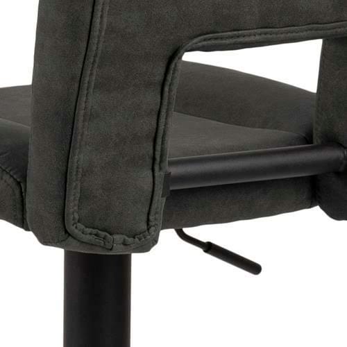 Extremely original bar stool Sylvia attracts the eye with fancy upholstery. The dark gray color of the seat and backrest with a cut-out brings an invigorating note to the interior. Supported by a metal, black frame is a stable dining furniture. This stool also has a comfortable leg rest and height adjustment. Thanks to these solutions, it is not only stylish, but also functional.